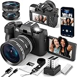 - 【Mühelose Selfies und sofortiges Teilen per WIFI】Machen Sie atemberaubende Aufnahmen mit der Digitalkamera mit Doppelobjektiv und nahtlosem Wechsel zwischen Front- und Rückkamera für perfekte Selfies und Vlogging. Mit der Vlogging-Kamera mit WLAN übertragen Sie Fotos und Videos sofort auf Ihr Smartphone und teilen sie schnell in sozialen Medien. Der Blitzschuhanschluss ermöglicht die Befestigung externer Leuchten und Mikrofone und verbessert so Ihr Live-Streaming-Erlebnis.