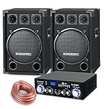 - Komplettes PA-Set für Einsteiger, 2x Lautsprecher, 1x Bluetooth-Endstufe, 10 m Lautsprecherkabel