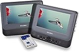 - Klarer HD-Bildschirm – Ausgestattet mit zwei hochauflösenden 7-Zoll-LCD-Displays (18 cm) bietet der DVD-Player mit Bildschirm brillante Bildqualität. Ideal für die Nutzung im Auto, Flugzeug oder Zug. Genießen Sie Filme und Videos in hoher Auflösung mit einem klaren, lebendigen Display.