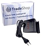 - ✅ 𝐓𝐑𝐀𝐃𝐄‐𝐒𝐇𝐎𝐏: Hochwertiges 4-fach USB Universal Ladegerät mit Handy- und Tablethalterung