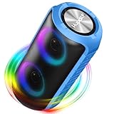 - 🌧️ IPX7 Wasserschutz + RGB-Lichteffekte: Der lautsprecher wasserdicht ist nach IPX7 zertifiziert (wasserdicht bis 1 Meter Tiefe für 30 Minuten) und eignet sich für den Einsatz bei Regen, im Badezimmer oder bei Poolpartys. Die RGB-Lichteffekte passen sich dem Musikrhythmus an und sorgen für eine angenehme Atmosphäre