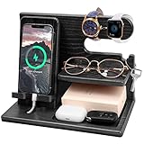 - Vielseitiges Design: Dieser Handy-Ladeständer ist nicht nur zum Aufladen und Unterstützen Ihres Telefons geeignet, sondern verfügt auch über zusätzliche praktische Funktionen wie Schlüsselhalter und Uhren-Organizer. Halten Sie Ihre Brieftaschen, Schlüssel, andere Gadgets organisiert und Ihren Schreibtisch ordentlich und ordentlich. (Bitte beachten Sie, dass das abgebildete Zubehör nicht im Lieferumfang enthalten ist)