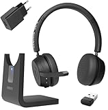 - 【Lange Batterielebensdauer & Ladestation】Laptop kopfhörer mit Mikrofon bietet bis zu 26 Stunden klare Sprechzeit und 210 Stunden Standby-Zeit nach 2 Stunden voll aufgeladen. Das USB Headset mit mikrofon ist ideal für Büroschichten und lange Autofahrten, so dass Sie sich keine Sorgen über Akkuprobleme machen müssen. Die mitgelieferte Plug-and-Play-Ladestation macht das Aufladen einfach.