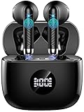 - Duale Echtzeit-LED-Anzeigen und 40-Stunden-Wiedergabe: Die digitale LED-Anzeige zeigt den Ladezustand des Ladeetuis und der Bluetooth kopfhörer in ear an. Beim Aufladen des Gehäuses beginnt die LED-Leuchte von 1 bis 100 zu blinken. Die in ear kopfhörer mit einer einzigen Ladung 8 Stunden lang gespielt werden, mit dem Ladegehäuse sogar 32 zusätzliche Stunden. Ausgestattet mit einem Type-C-Kabel bietet es Ihnen ein schnelleres und stabileres Laden.