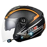 - ⭐Mehrschichtiger Schutz: Dieser Motorrad-Jethelm verfügt über eine hochwertige, leichte ABS-Schale und eine hochdichte EPS-Dämpfungsschicht, die eine starke Stoßdämpfung, hervorragende Dämpfung und eine bequeme Passform bietet. Dies maximiert die Fahrsicherheit.