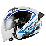 - 🏴Doppelte Sonnenblenden: Dieser Motorrad-Halbhelm ist mit Sonnenblenden ausgestattet. Die Visiere sind kratzfest, strahlungsabweisend, UV-beständig, blendfrei, transparent und abriebfest und eignen sich daher ideal for windiges, regnerisches und heißes Mittagswetter.