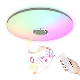 - 【Musik-Deckenleuchte】Die LED-Deckenleuchte hat einen eingebauten Bluetooth-Lautsprecher, dann können Sie Ihre Musik-App über Bluetooth steuern, um Ihre Lieblingsmusik zu hören. Sie bietet auch ein rhythmisches Muster und das Licht kann je nach Rhythmus der Musik verschiedene Stimmungen erzeugen, was sich sehr gut für Familientreffen eignet.