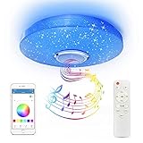 - [Bluetooth Lautsprecher der hohen Qualität]: verbinden Sie die Deckenleuchte mit Mobiltelefon Bluetooth oder Tablet, um Ihre Lieblingsmusik und Geschichten zu spielen, die Lichter ändern sich mit dem Rhythmus und der Melodie der Musik, Sie können Musik genießen, während Sie eine Dusche nehmen, den Stress des Tages freilassen und Sie mehr in den Spaß der Musik eintauchen, Sie können auch Musik oder Geschichten mit Ihrem Kind genießen und die Freude der Familie genießen. (Bluetooth PIN: 8888)
