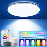 - 【Dimmbar & RGB-Farbwechsel】Die LED-Deckenlampe mit Farbwechsel verfügt über drei tägliche Beleuchtungslichter (warmweiß-neutralweiß-kaltweiß), die von 100% bis 10% gedimmt werden können. Die RGB-Wohnzimmerlampen bieten Ihnen 7 RGB-Farben. Mithilfe von Apps oder Fernbedienungen können die 256 verschiedenen RGB-Lichtfarben der Deckenlampen Ihrem Zuhause eine romantische oder festliche Atmosphäre verleihen.