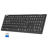 - Langlebige Akkulaufzeit: Die ultraslim wiederaufladbare tastatur verfügt über einen integrierten 500-mAh-Akku mit hoher Kapazität, der mit einer 2-stündigen Aufladung bis zu 180 Tage lang verwendet werden kann (basierend auf 2 Stunden täglicher Nutzung). Die funktastatur wechselt nach 30 Minuten Inaktivität automatisch in den Schlafmodus und wacht durch Drücken einer beliebigen Taste sofort wieder auf