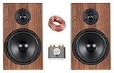 - Anschlüsse: Rohkabelklemmen, Auch für Wandmontage geeignet, Abmessungen je Box (H x B x T): 30 x 18 x 17 cm, Gewicht je Box: 2,4 kg, Inklusive 2 Lautsprecher-Kabel mit 3 m Länge, Braune Walnuss-Holz-Optik