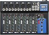 - 7-Kanal-Eingang: 5 Mono-Mikrofon/Line-Kanal-Eingang, 1 Satz von Stereo-Eingang,Eingebaute Bluetooth-Funktion: Unterstützt kabelloses Andocken der meisten Bluetooth-fähigen elektronischen Geräte, schnelles Andocken und kabelloses Genießen