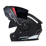 - Wasserdichtes und multifunktionales Bluetooth: Der Bluetooth-Motorradhelm mit Frontklappe verwendet die neueste Bluetooth-Technologie, eine superstarke Signalübertragung, einen superniedrigen Stromverbrauch, unterstützt alle Bluetooth-Geräte und verfügt über Stereo-Bass-Surround-Sound-Qualität und automatische Antworten. Songwiedergabe, aktive Geräuschunterdrückung bei Anrufen.