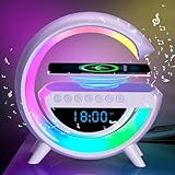 - 【Multifunktionale Lampe】 Kombiniert Bluetooth Lautsprecher, LED-Licht, kabellose 3-in-1 Ladestation und digitale Uhranzeige in einem eleganten Gerät. Ideal für Schlafzimmer, Büro oder Wohnzimmer – sorgt für Musik, Licht, Zeit und kabelloses Laden zugleich.