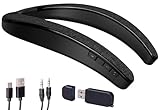 - Einfache Wiedergabe von TV-Gerät (über Klinke-Kabel), per Bluetooth von Smartphone, Tablet-PC u.v.m., per USB-Transmitter mit Bluetooth vom PC und TV oder von microSD-Speicherkarte • Bluetooth 5.3 zur kabellosen Übertragung mit bis zu 20 Meter Reichweite • Steckplatz für microSD(HC)-Speicherkarte bis 32 GB (bitte dazu bestellen), unterstützt MP3, WMA, WAV • Steuerung direkt am Nackenlautsprecher: Lautstärke, MP3-Wiedergabe, Freisprechen