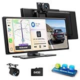 - 📷【Carplay mit Dashcam Vorne und Hinten 2.5K + 1080P】Dieses Wireless App1e Car Play Display fürs Auto mit Dashcam kombiniert eine ultrascharfe 2.5K-Frontkamera mit einer 1080P-Rückfahrkamera. Dank Split-Screen-Funktion können Sie Front- und Rückansicht gleichzeitig anzeigen oder flexibel zwischen nur vorne/hinten umschalten. Perfekt für mehr Sicherheit und Kontrolle beim Fahren. (Tipp: Eine 64 GB TF-Karte ist im Lieferumfang enthalten, ein separater Kauf ist nicht nötig.)