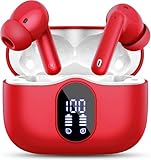 - Längerer Hörgenuss und Dual-LED-Leistungsanzeige: Die headphones bieten bis zu 15 Stunden hochwertige Klangausgabe mit einer einzigen Ladung, und die mitgelieferte Ladehülle bietet zusätzliche 4 Ladungen, wodurch die ohrhörer bluetooth eine Gesamtspielzeit von 75 Stunden haben. Der bluetooth kopfhörer in ear verfügt über eine einzigartige LED-Anzeigetechnologie. Die linke Seite zeigt die verbleibende Leistung des Ladefachs und die rechte Seite zeigt die Kopfhörerleistung.