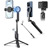 - 2-in-1 magnetischer Selfie-Stick und Stativ: Dieses Bluetooth-Selfie-Stick-Stativ (mit Telefonklemme) ist universell für MagSafe-Handys und Android-Nicht-MagSafe-Telefone, wie iPhone 17, 17Pro, 17Pro Max,16 15, 14, 13, 12 Serie, iPhone 16, 16 Plus, 16 Pro, 16 Pro Max, 15, 15 Pro Max, 15 Pro, 15 Plus, iPhone 14, 14 Pro Max, 14 Pro, 14 Plus, 13, 13 Pro, 13 Pro Max, 13 Mini, iPhone 12, 12 Pro, 12 Pro Max, 12 Mini, Samsung Galaxy, Huawei, Google Pixel, LG und die meisten anderen Handys auf dem Markt. Einfach auf Ihr Telefon einrasten für Vlogging oder Selfie.