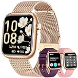 - 1,83'' HD Touchscreen und DIY Zifferblatt:Smartwatch damen mit 1,83 zoll touchair, Sanftere Bildschirmnutzung und klarere Bildqualität. Die smart watch hat mehr als Uhr-Zifferblätter für Sie zur Auswahl aus der "Da Fit"-App und unterstützt auch DIY-Zifferblätter, so dass Sie das Zifferblatt mit Ihren Lieblingsbildern anpassen können. Die smart uhr wird außerdem mit zwei Silikonarmbändern, insgesamt drei, geliefert, die sie zum idealen Accessoire für alle Gelegenheiten mache