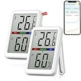 - [ Genauerer Sensor ] Ausgestattet mit einem fortschrittlichen NTC-Feuchtigkeitssensor. Dieses Hygrometer zeichnet sich für die Luftfeuchtigkeit im Innenbereich durch eine hohe Genauigkeit (+/-0,3 ℃ und +/-2 % RH) und eine schnelle Aktualisierung (10 Sekunden) aus und liefert genaue Messwerte auf Ihrem Smartphone