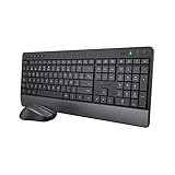 - Trust Trezo Wireless Spanische QWERTY Tastatur und Maus, Langlebiges Design, leise und ergonomische Tastatur, Handgelenkstütze, 48 Monate Akku, 2,4 GHz, Mac, PC, Laptop