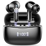 - 【Premium Deep Bass Stereo Sound & Crystal Clear Call】 Wireless Earbuds Built-in 14.2mm drivers amplify bass by 43%. die den Bass ausdrucksvoller und den Mitteltöner voll und strukturiert machen, sodass Stereo-Sounds knackig, klar und ausgewogen sind. 4 MIC- und ENC-Algorithmen, die das Rauschen bei Anrufen um 90% reduzieren und Ihre Stimme bei jedem Anruf klar klingen.