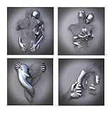 - 【Love Heart 3D Wall Art】: Leinwand für moderne Kunstreproduktionen von Metallskulpturen. Love Heart Grey Couples Statue Art Wall, gedruckt auf hochwertiger Künstlerleinwand.