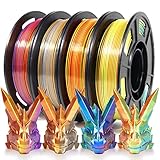 - 【Tight tolerance】iSANMATE silk pla (gold+rot kupfer+lila, gold+rot kupfer+silber, rot+gelb+blau, orange+grün+blau), 250g/Rolle x 4 Farben. Das silk tri color pla filament wird mit einem fortschrittlichen Durchmessermesssystem und einem adaptiven Kontrollsystem mit strenger manueller Kontrolle hergestellt. Der Präzisionsdurchmesser beträgt 1,75 mm und die Maßgenauigkeit liegt bei +/- 0.03 mm. Gute Wicklung zur Vermeidung von Druckfehlern, Verklemmungen oder Blockierungen.