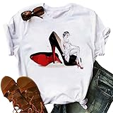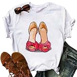 - Damen T-Shirt Lustig Grafik Print Kurzarm Rundhalsausschnitt T-Shirt Tops Casual Loose Damen Sommerhemden