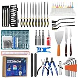 - 84 Stück 3d Druck Zubehör: Einschließlich 1 x Carving Werkzeug Messer 3D (13 Arten von Klingen), 10 mini PCB bohrer, 10 Reinigungsnadeln, 3 Reinigungsbürsten, 10 Arten von Nadelfeilen, 11 Trimmmesser, 3 Edelstahl-Rakel für 3D-Druck, 2 Pinzetten, 1 Zange, 2 Drahtschneidezange, 1 Satz Düsenentfernungsschlüssel, 8 Inbusschlüssel, 2 Polierstäbe Schleifstäbe, 1 Lineal, 1 Schneidematte, 1 Teflonrohr-Schneidwerkzeug, 1 Phillips-Schlüssel
