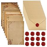 - Retro-Schreibset:Das Paket enthält 16 Blätter Kraft-Umschlagpapier im Format 13,2 x 18,2 cm mit 8 verschiedenen Mustern, 2 Blätter von jedem Muster, 16 passende Retro-Umschläge (jeder Umschlag ist 11,3 x 16 cm groß) und 16 weinrote selbstklebende Wachssiegelaufkleber