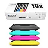 - Lieferumfang und Reichweite: 10x Toner (2x Blau/Cyan mit je ca. 1.000 Seiten, 2x Gelb/Yellow mit je ca. 1.000 Seiten, 2x Rot/Magenta mit je ca. 1.000 Seiten, 4x Black/Schwarz mit je ca. 1.500 Seiten), Angaben zur Reichweite bei 5% Deckung