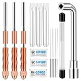 - 【KOMPLETTES 3D-DRUCKER-DÜSEN SET】Dieses Set enthält 3 Düsen aus Chrom-Zirkonium-Kupfer 0,4 mm, 30 Edelstahl-Reinigungsnadeln, 3 Tuben Wärmeleitpaste und 1 Legierungsschlüssel. Alle Zubehörteile decken Installation, Nutzung und Wartung ab. Düsen sind hitzebeständig und leitfähig, Reinigungsnadeln beseitigen Rückstände, Wärmeleitpaste optimiert Wärmeleitung und der Schlüssel erleichtert den Düsenwechsel.