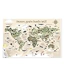 - Dieses Poster zeigt Kontinente, Ozeane und zahlreiche Tierillustrationen, damit Kinder Geografie intuitiv verstehen.