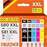 - REICHWEITE : Ersetzt die Original Tintenpatrone PGI580XXL / CLI581XXL inklusive aktuellem Chip und Füllstandsanzeige. Seitenreichweite: PGI 580 XXL PGBK bis zu 1200 Seiten, CLI 581 XXL Farben bis zu 1660 Seiten (DIN A4 bei 5% Deckung)