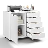 - 🖨️MULTIFUNKTIONALER STAURAUM: 5 Schubladen sind ideal für die Aufbewahrung verschiedener Schreibwaren und Bürobedarf sowie ein großzügiges Tablett für einen Drucker. Der große Türschrank bietet idealen Platz für Bücher oder Dokumente.