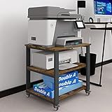 - Stylish and modern: the desktop printer stand is full of classic elegance and modern trends, brown finish combined with a black metal frame, it can be perfectly integrated with most office furniture and home decoration. With its sleek design, our printer table with storage adds a touch of modern style to any office or workspace.