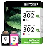 - INFITONER 302 XL Kompatibel für HP 302 Druckerpatronen 302XL für Envy 4525 4520 Patronen (mit Chip, nicht original)