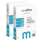 - Papier: Das m-office Papier hat eine Größe von A5 (148x210mm), ein Gewicht von 80g und jede Packung enthält 500 weiße Blätter. Hergestellt aus langlebigen Materialien, die eine ausgezeichnete Druck- und Schreibqualität auf jeder Seite gewährleisten.