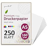 - Hochwertiges blanko Kopierpapier im praktischen DIN A5 Format. Das younikat Kopierpapier Set enthält 250 Blatt unbedruckte Papier-Zuschnitte im handlichen DIN A5 Format. Mit einer Grammatur von 160 g/m² bietet dieses Papier in Weiß, eine stabile dennoch flexible Struktur, die es perfekt für verschiedene Anwendungen wie Kopieren, Drucken und Basteln macht.
