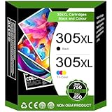 - Geschätzte Seitenproduktion: 750 Seiten pro 305XL Schwarz, 450 Seiten pro 305XL Farbe,Kompatible für HP 305 Druckerpatronen ( bei 5% Abdeckunge von A4)