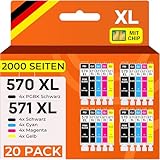 - 【Packungsinhalt】: Kompatible Für Canon 570 571,einschließlich 4 x PGBK Canon PGI-570 XL,4 x CLI-571 XL Schwarz, 4 x CLI-571 XL Cyan, 4 x CLI-571 XL Magenta, 4 x CLI-571 XLGelb, 20er-Pack(Verpackung kann variieren
