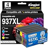 - 937 4er-Pack Patronen mit Chip: Set mit 4 Patronen 937XL mit Ersatzchip für HP 937 937XL 937e, 1 x 937XL schwarz, 1 x 937XL cyan, 1 x 937XL magenta, 1 x 937XL gelb. Einzeln vakuumverpackt auslaufsicher