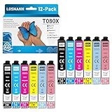 - Packungsinhalt: 12er-Pack T080X Tintenpatrone ( 2 Schwarz, 2 Cyan, 2 Magenta, 2 Gelb, 2 Light cyan, 2 Light Magenta )