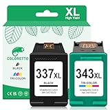 - Packungsinhalt:2er-Pack wiederaufbereitete Tintenpatronen für HP 337 XL 343 XL (1 Schwarz & 1 Farbe) Kombipack. Hinweis: Dies ist kein Originalprodukt. Bitte bestätigen Sie vor dem Kauf Ihr Druckermodell.