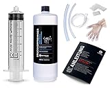 - a) Lieferumfang: 100 ml helle Cyan-Reinigungsflüssigkeit, 1 x 5 ml Spritze, 1 x Silikonschlauch, 1 x Paar Handschuhe, 2 x Ellenbogen, 1 x großer Gummistopfen, 1 x kleiner Gummistopfen, 1 x Bedienungsanleitung (evtl. nicht in deutscher Sprache).