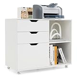 - 【Vielseitiger Stauraum】Dieser Rollcontainer kombiniert offene Ablage und 3 Schubladen, um Unterlagen Bürobedarf oder Haushaltsartikel übersichtlich zu verstauen Die zwei oberen Schubladen eignen sich für Kleinteile die große untere Schublade bietet Platz für größere Dokumente und Hängemappen Die stabile Oberplatte ist ideal als Stellfläche für Drucker oder Scanner