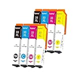 - Lieferumfang: 2 Schwarz, 2 Foto Schwarz, 2 Cyan, 2 Magenta, 2 Gelb, 10er-pack kompatible Tintenpatronen als Ersatz für Epson 33XL Multipack .