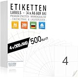 - LEICHTES ABLÖSEN: Jedes der 105 x 148 mm Etiketten (4 Etiketten pro A4 Bogen) ist so konzeptiert, das es sich sehr leicht ablösen lässt – ideal für effizientes Arbeiten und problemloses Anbringen.