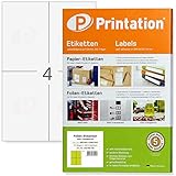 - 400 KLEBEETIKETTEN - auf 100 DIN A4 Bögen - Je 4 Etiketten pro Blatt. Hochwertiges, weißes Papier - matt, holzfrei, umweltfreundlich & recyclebar